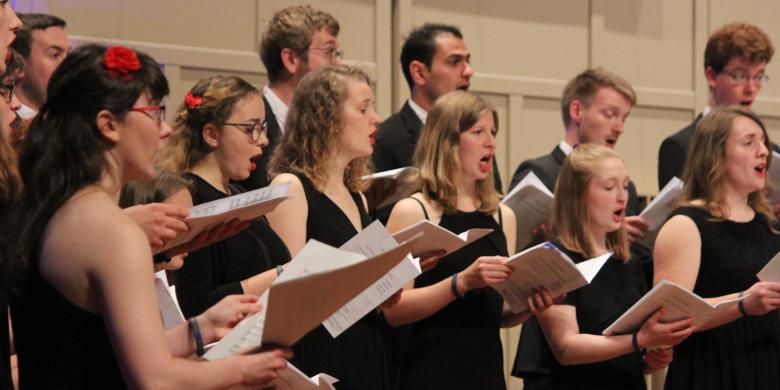 Der Kammerchor der Hochschule für Musik Detmold fächert unter der Leitung der AbsolventInnen des Intensivkurses Chordirigieren bei Anne Kohler die Palette von Spätromantik und klassischer Moderne bis hin zu experimentellen und klangsinfonischen Stücken auf.